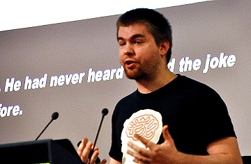 意外にもHedeholm氏は英語圏において「Standup Comedy」と呼ばれる,コメディアンが観客の前で直接小噺を披露するショーを見ているときに,「良いジョークの構造と,良いパズルの構造は同じだ」ということに気づいたという。